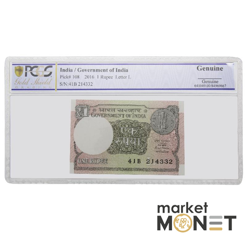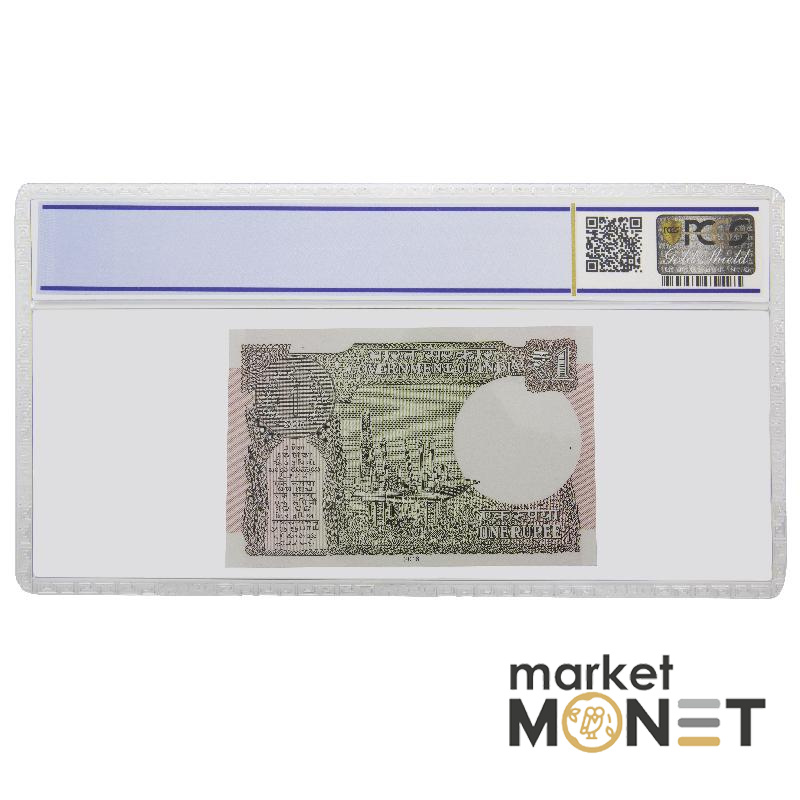 Індійська банкнота 1 рупія в слабі від компанії PCGS