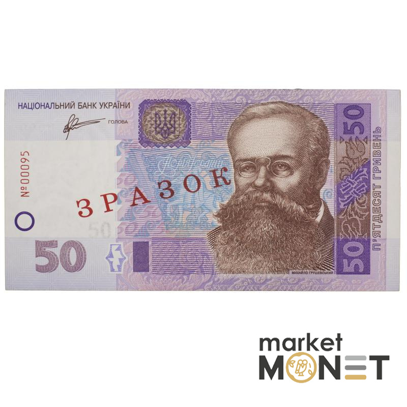 Основний малюнок лицьової сторони — портрет МИХАЙЛА ГРУШЕВСЬКОГО