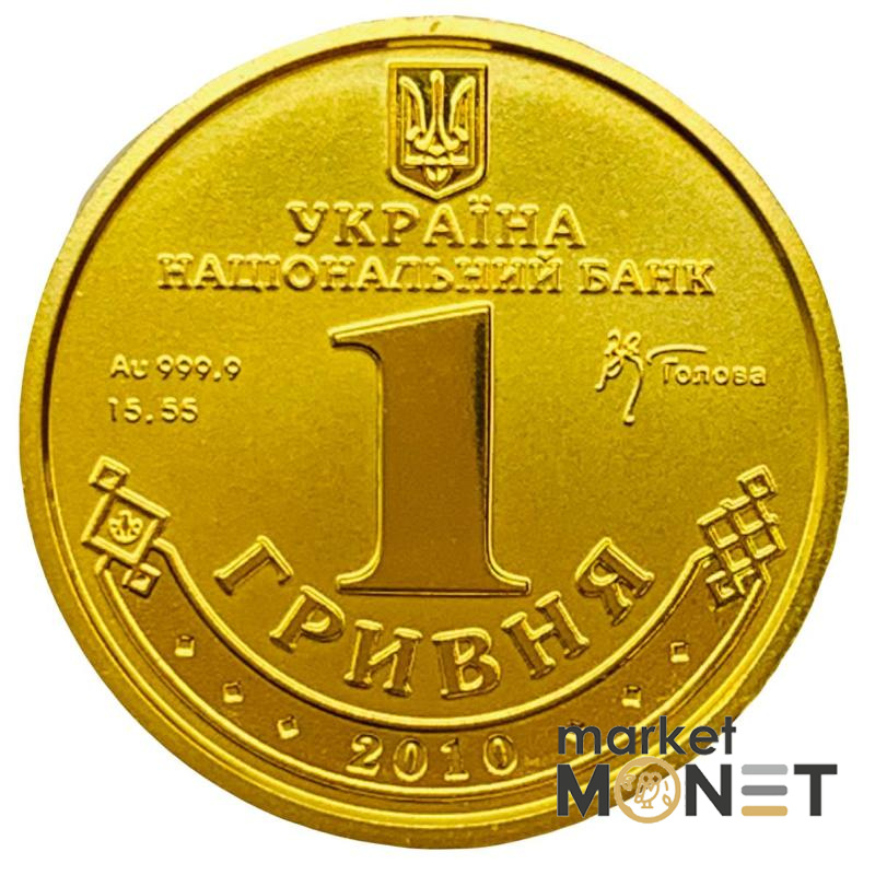 На аверсі монети розміщено: угорі – малий Державний Герб України, під яким написи: УКРАЇНА/НАЦІОНАЛЬНИЙ БАНК; номінал 1 (по центру), позначення металу, його проби, маси монети в чистоті Au 999,9/15,55 (ліворуч від номіналу), ГОЛОВА та підпис В. С. Стельмаха, який очолював Національний банк України у 2010 році (праворуч від номіналу), ГРИВНЯ (під номіналом півколом); унизу на тлі стилізованого орнаменту у вигляді підкови – рік карбування 2010.