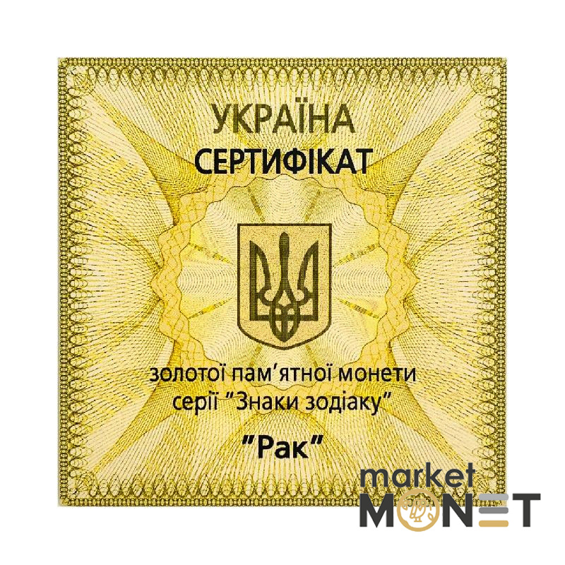 Золота монета «Рак» – пам'ятна подарункова золота монета знака зодіаку, випущена Національним Банком України в рамках серії монет «Знаки Зодіаку». Монета присвячена сузір'ю «Рак». До кожної золотої монети додається сертифікат НБУ з описом усіх характеристик монети.