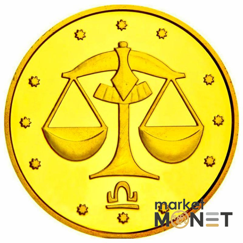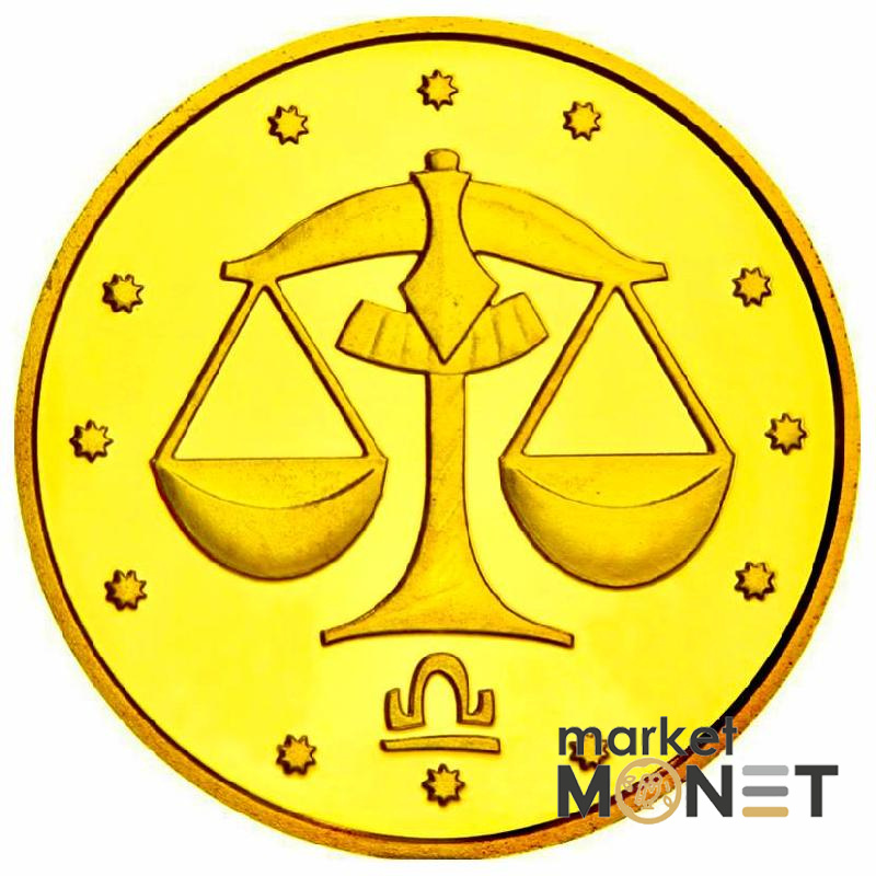 На реверсі монети розміщено стилізоване зображення знака зодіаку «Терези» в оточенні зірок, а також знак зодіаку.