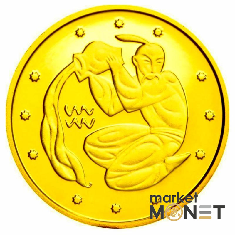 На реверсі монети розміщено стилізоване зображення Водолія в оточенні зірок, над яким символ знака зодіаку.