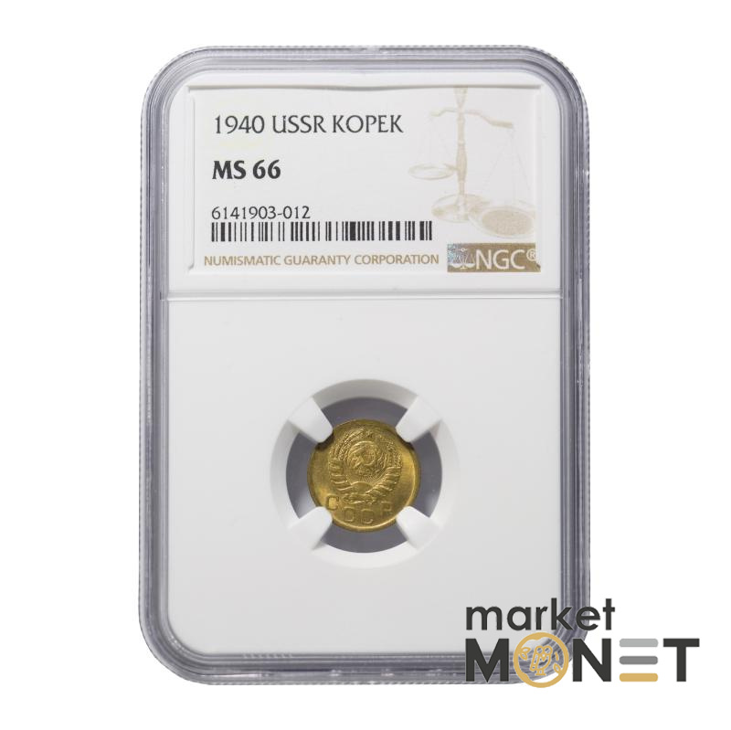 Монета 1 копейка 1940 г. СССР в слабе MS 66