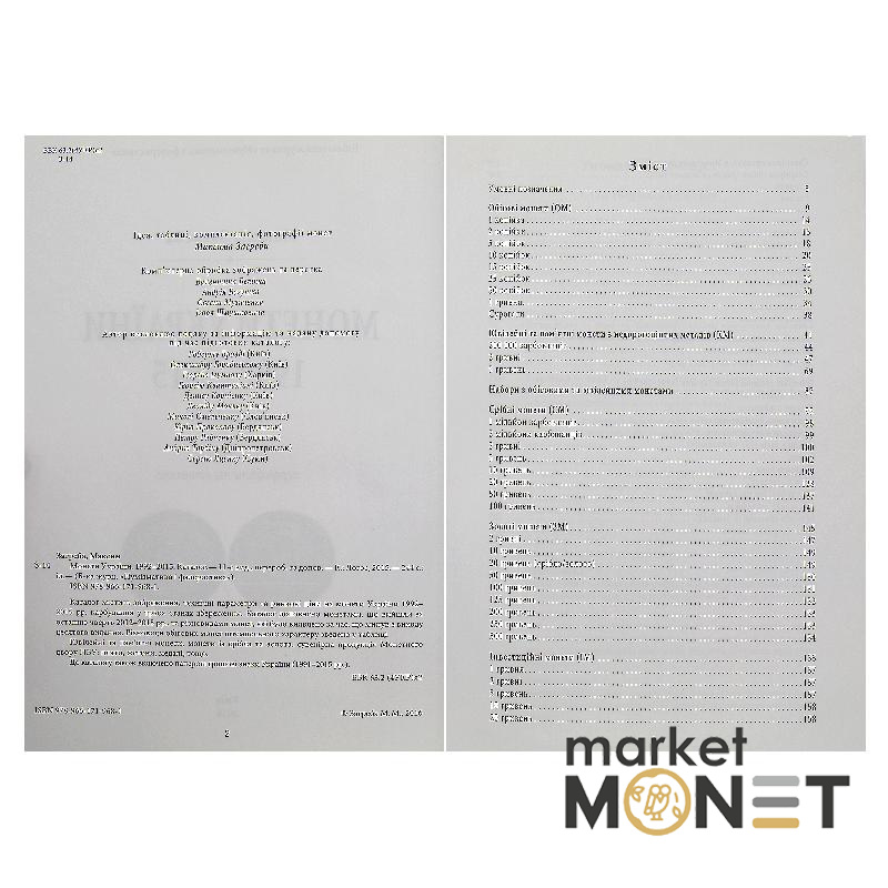 Каталог містить зображення, технічні параметри та ринкові ціни на монети України 1992- 2015 рр. карбування у трьох станах збереження. Каталог доповнено монетами, що вийшли зі останню чверть 2012-2015 рр., та різновидами монет, які було виявлено за час, що минув з виходу десятого видання. Різновиди обігових монет штемпельного характеру зведено у таблиці.
