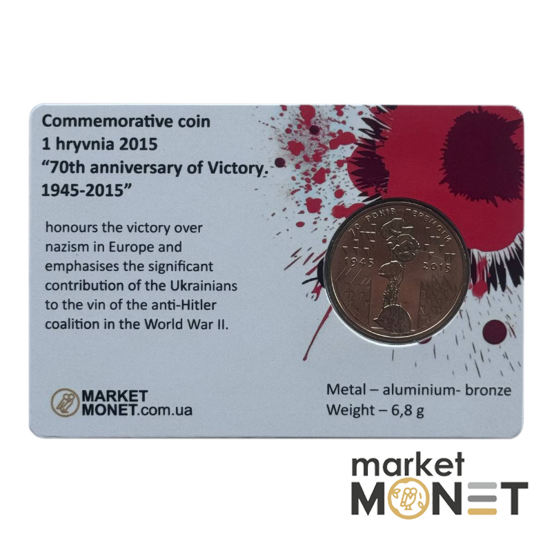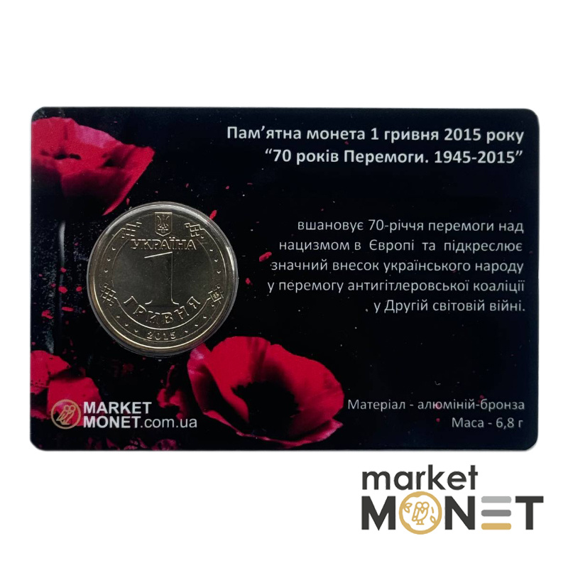 —Памятная монета 1 гривен 2015 Украина "70 лет Победы. 1945 - 2015" в сувенирной упаковке