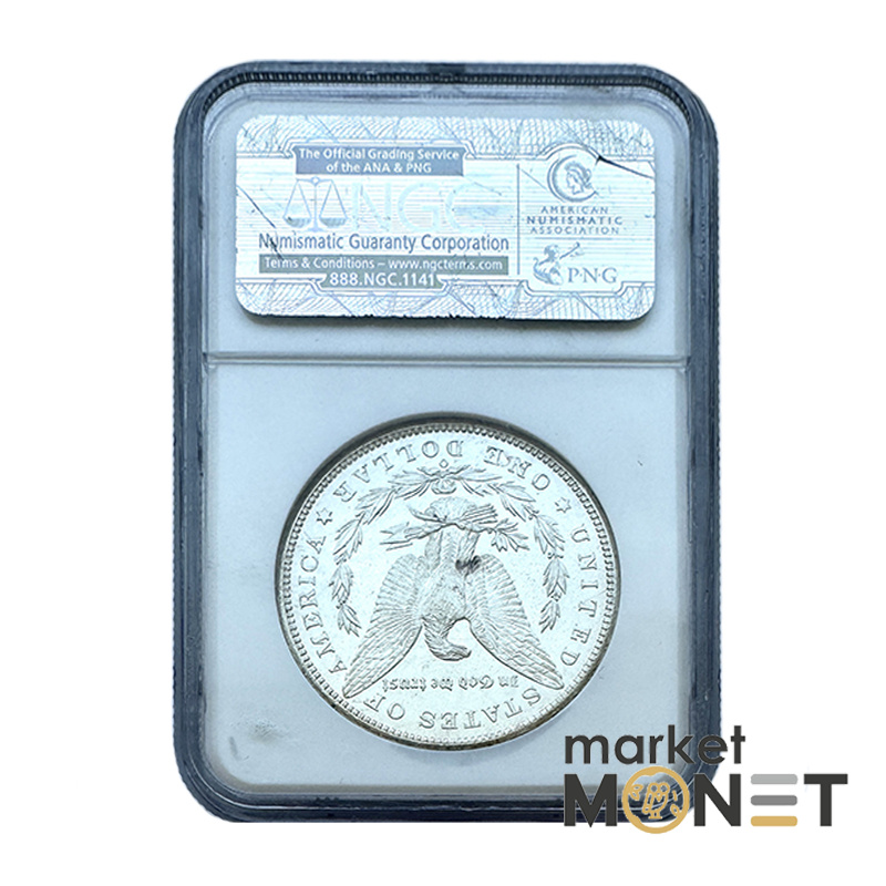 Серебряная монета 1 доллар 1899 США 900 доллар Моргана в слабе MS 64